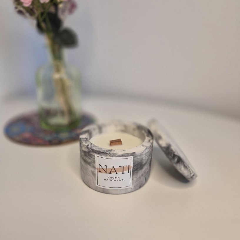 A unique artisan candle made of 100% eco soy wax in a handmade gypsum pot
